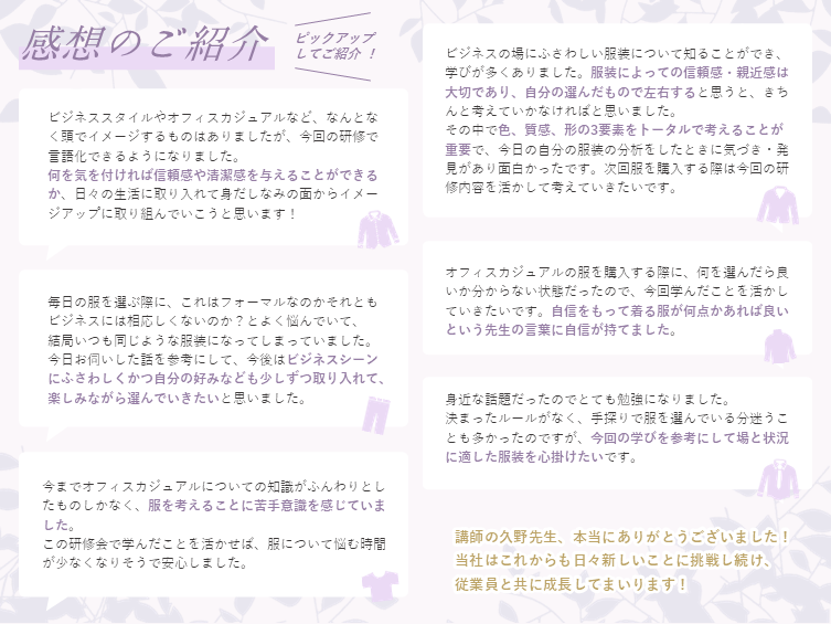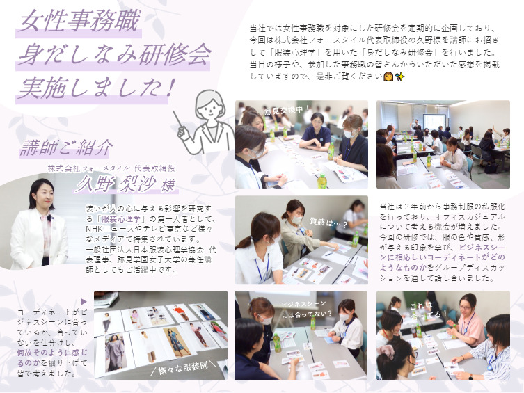 〖女性事務職研修会〗身だしなみ研修会を開催しました👚