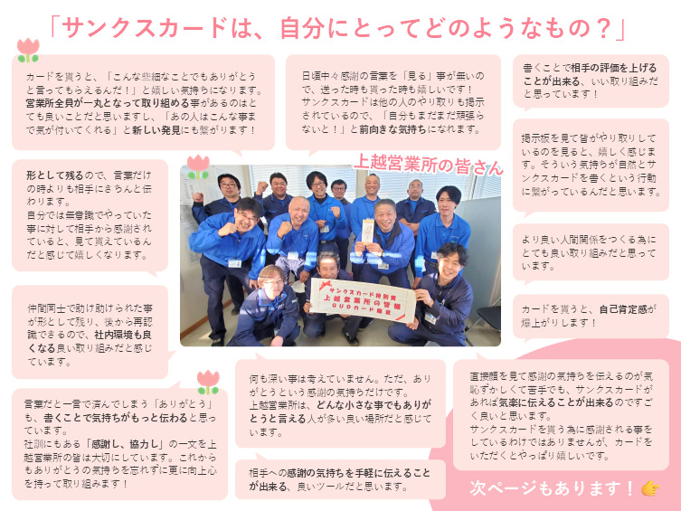 上越営業所の皆さんから取組みについてのコメントをいただいていますので、
